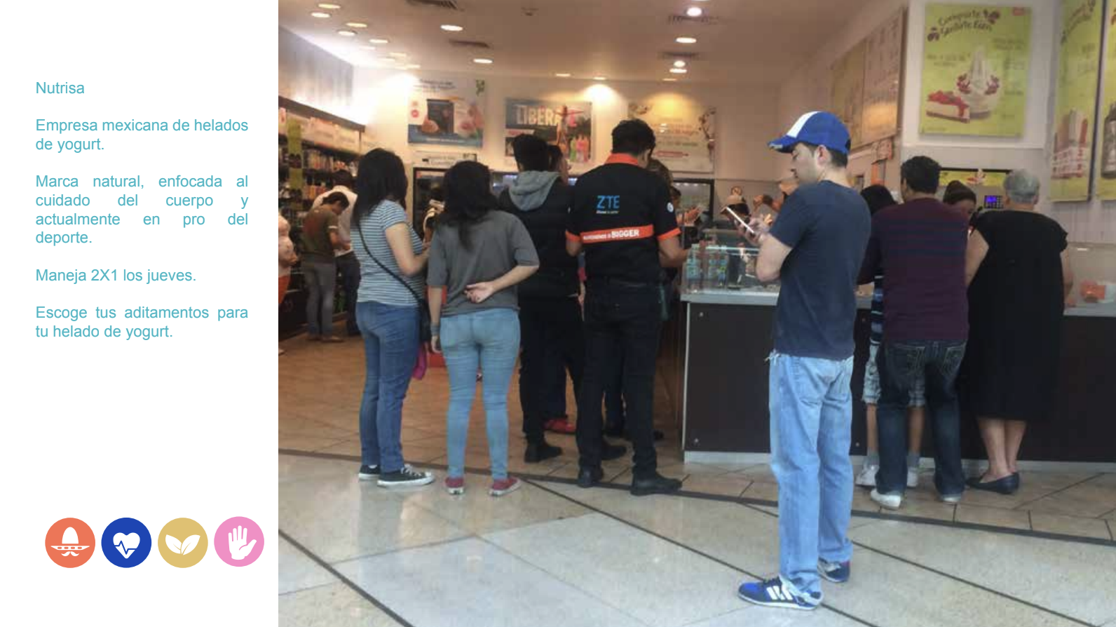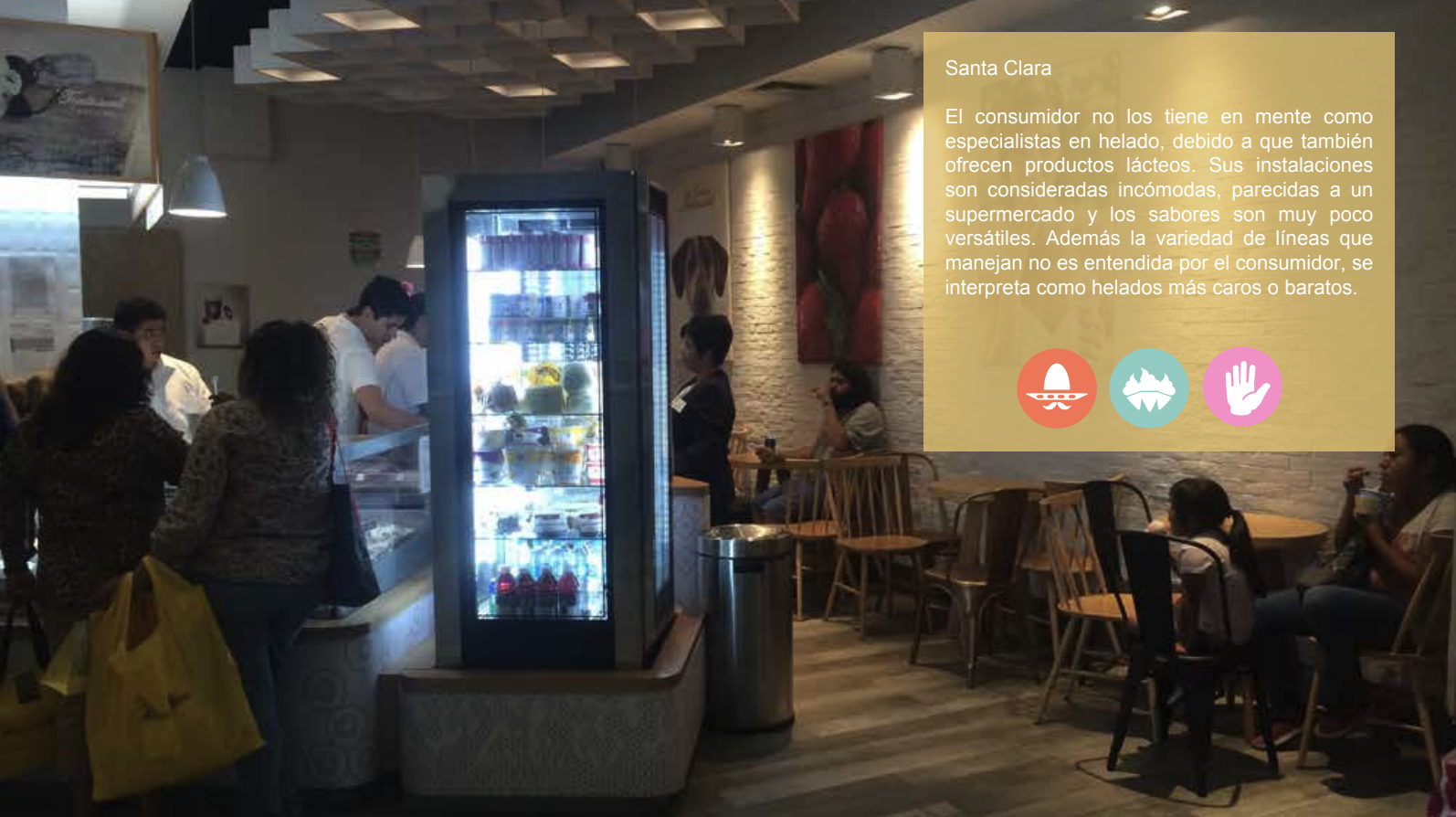 Por otro lado, se realizó a la par la observación de campo para ayudar a entender los comportamientos comunes en los mexicanos: antes de comprar un helado, a la hora de comprarlo, durante lo consume y después. Ayudar a identificar un Jobs to be done. Identificando hábitos y patrones en personas de diferentes edades, géneros y clases socioeconómicas, para así definir los puntos clave que podrían generar un cambio de experiencia. Por esta razón se tuvo especial atención en recolectar información sobre los productos (sabores, tamaño, forma) que se consumen y por qué, así como opiniones y experiencias sobre la rutina de compra, todo esto con el fin de definir un rango potencial de perfiles de usuarios. Se hizo un levantamiento fotográfico de distintas heladerías para ver su estructura, imagen y proceso de venta. Esto nos ayuda a construir un customer journey, BMC y esclarecer nuestras hipótesis para definir arquetipos.