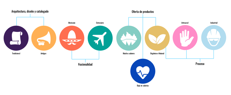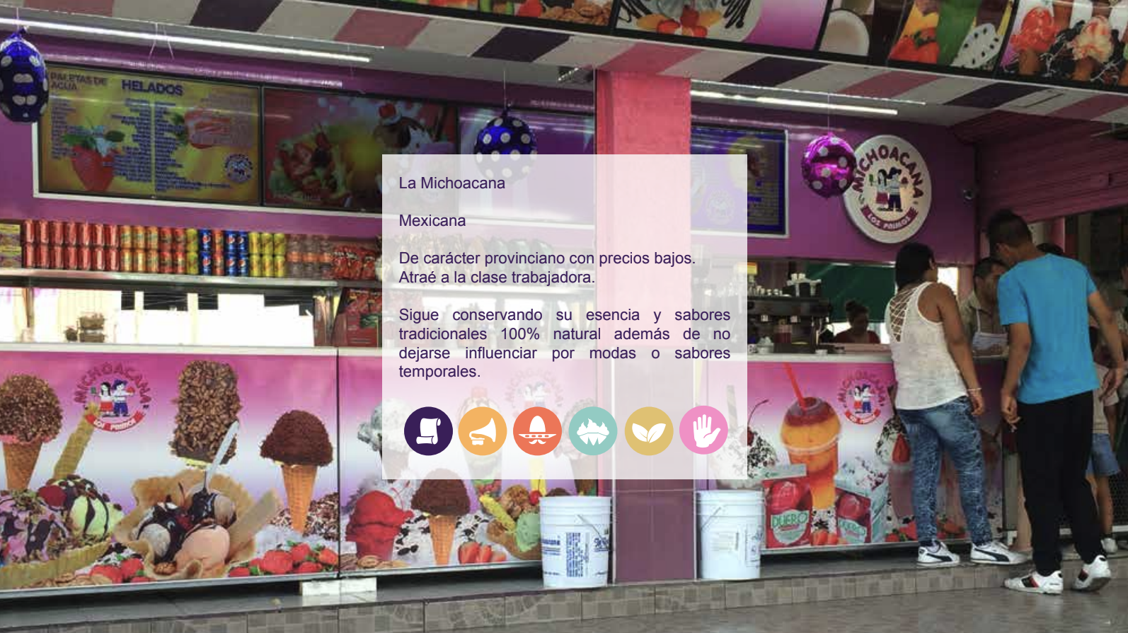 Se definió una iconografía para reconocer las categorías entre cada heladería.